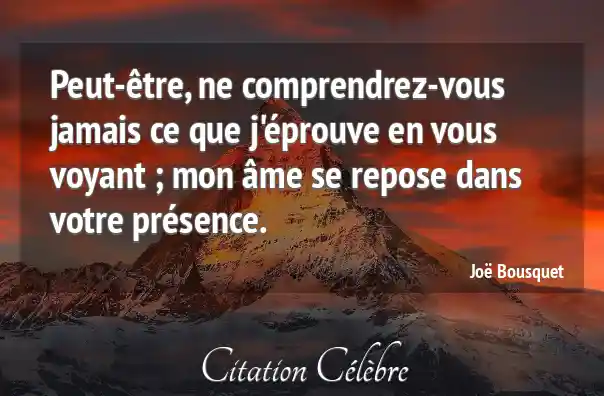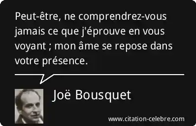 Peut-être, ne comprendrez-vous jamais ce que j'éprouve en vous voyant ; mon âme se repose dans votre présence.