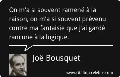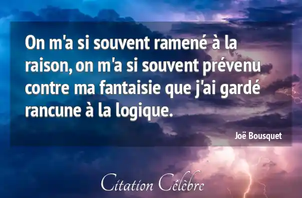 On m'a si souvent ramené à la raison, on m'a si souvent prévenu contre ma fantaisie que j'ai gardé rancune à la logique.