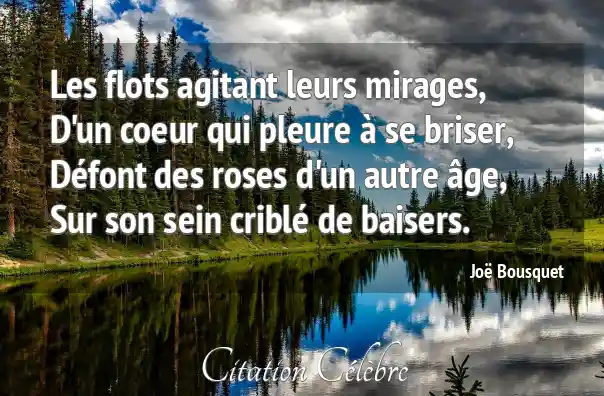 Les flots agitant leurs mirages,D'un coeur qui pleure à se briser,Défont des roses d'un autre âge,Sur son sein criblé de baisers.