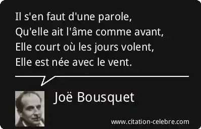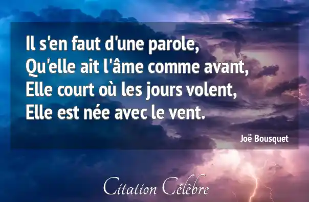 Il s'en faut d'une parole,Qu'elle ait l'âme comme avant,Elle court où les jours volent,Elle est née avec le vent.
