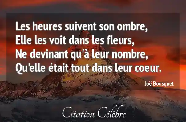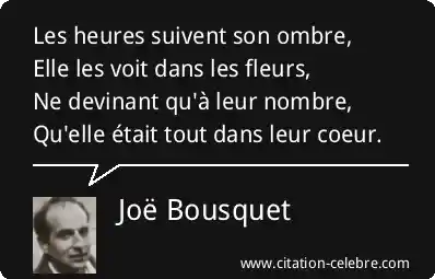 Les heures suivent son ombre,Elle les voit dans les fleurs,Ne devinant qu'à leur nombre,Qu'elle était tout dans leur coeur.
