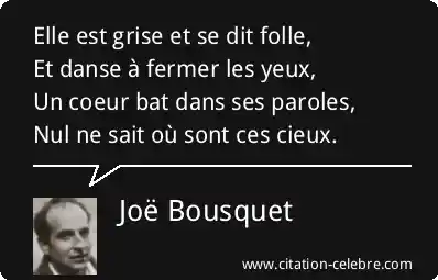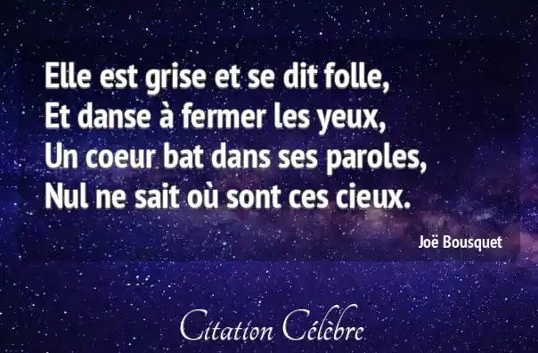 Elle est grise et se dit folle,Et danse à fermer les yeux,Un coeur bat dans ses paroles,Nul ne sait où sont ces cieux.