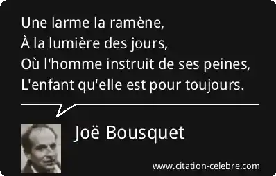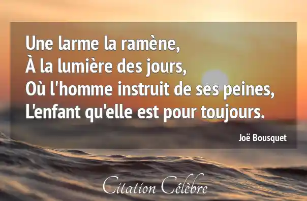 Une larme la ramène,À la lumière des jours,Où l'homme instruit de ses peines,L'enfant qu'elle est pour toujours.