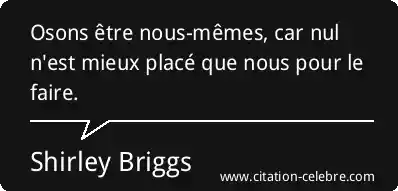 Osons être nous-mêmes, car nul n'est mieux placé que nous pour le faire.