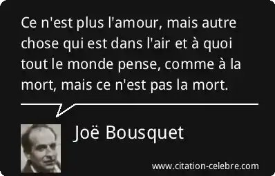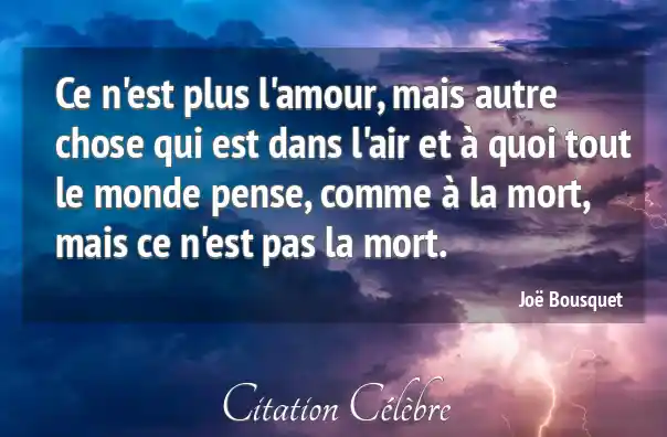 Ce n'est plus l'amour, mais autre chose qui est dans l'air et à quoi tout le monde pense, comme à la mort, mais ce n'est pas la mort.