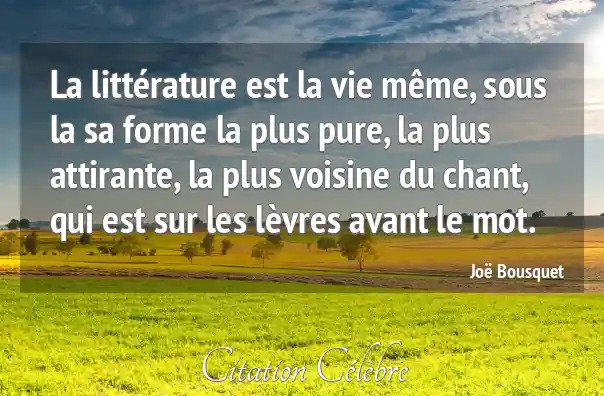 La littérature est la vie même, sous la sa forme la plus pure, la plus attirante, la plus voisine du chant, qui est sur les lèvres avant le mot.