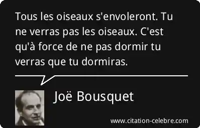 Tous les oiseaux s'envoleront. Tu ne verras pas les oiseaux. C'est qu'à force de ne pas dormir tu verras que tu dormiras.