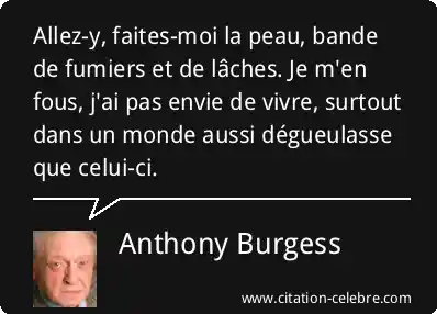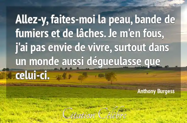 Allez-y, faites-moi la peau, bande de fumiers et de lâches. Je m'en fous, j'ai pas envie de vivre, surtout dans un monde aussi dégueulasse que celui-ci.