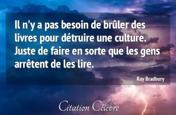 Il n'y a pas besoin de brûler des livres pour détruire une culture. Juste de faire en sorte que les gens arrêtent de les lire.