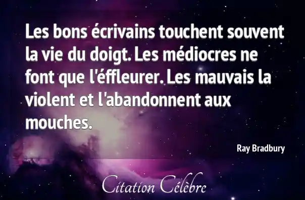 Les bons écrivains touchent souvent la vie du doigt. Les médiocres ne font que l'éffleurer. Les mauvais la violent et l'abandonnent aux mouches.