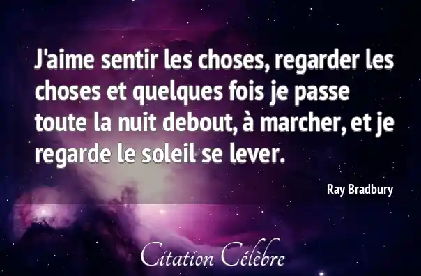 J'aime sentir les choses, regarder les choses et quelques fois je passe toute la nuit debout, à marcher, et je regarde le soleil se lever.