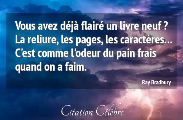 Vous avez déjà flairé un livre neuf ? La reliure, les pages, les caractères... C'est comme l'odeur du pain frais quand on a faim.