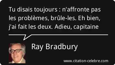 Tu disais toujours : n'affronte pas les problèmes, brûle-les. Eh bien, j'ai fait les deux. Adieu, capitaine