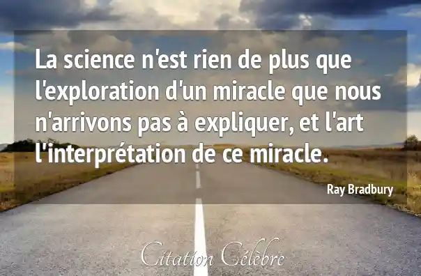La science n'est rien de plus que l'exploration d'un miracle que nous n'arrivons pas à expliquer, et l'art l'interprétation de ce miracle.