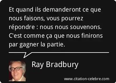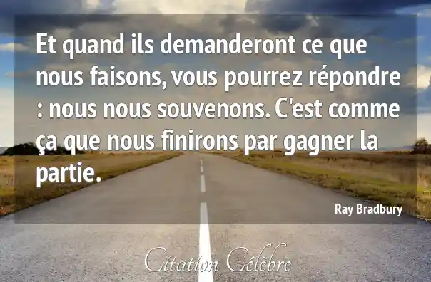 Et quand ils demanderont ce que nous faisons, vous pourrez répondre : nous nous souvenons. C'est comme ça que nous finirons par gagner la partie.