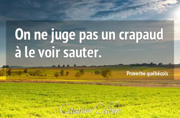 On ne juge pas un crapaud à le voir sauter.