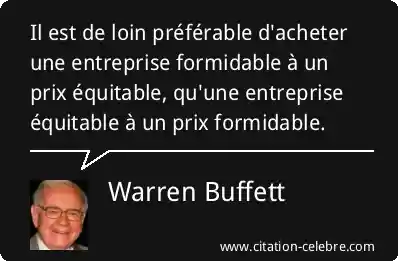 Il est de loin préférable d'acheter une entreprise formidable à un prix équitable, qu'une entreprise équitable à un prix formidable.