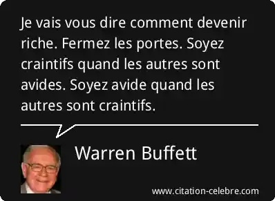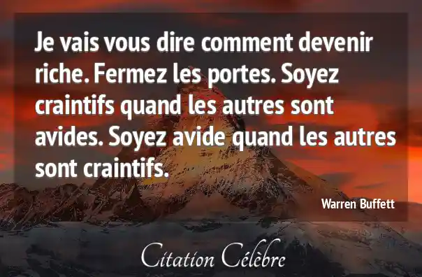 Je vais vous dire comment devenir riche. Fermez les portes. Soyez craintifs quand les autres sont avides. Soyez avide quand les autres sont craintifs.