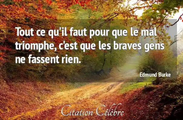 Tout ce qu'il faut pour que le mal triomphe, c'est que les braves gens ne fassent rien.