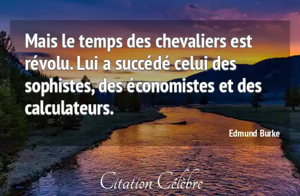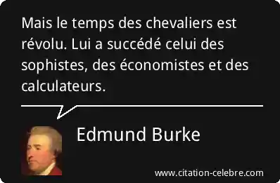Mais le temps des chevaliers est révolu. Lui a succédé celui des sophistes, des économistes et des calculateurs.