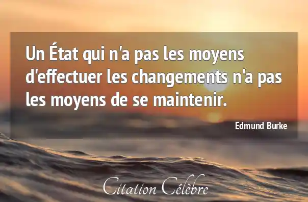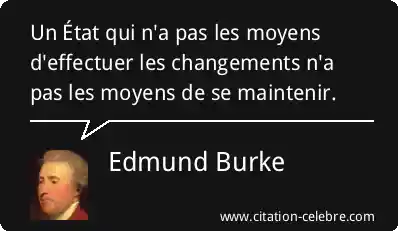 Citation Edmund Burke etat : Un État qui n'a pas les moyens d'effectuer les changements...