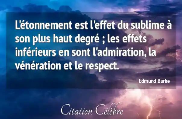 L'étonnement est l'effet du sublime à son plus haut degré ; les effets inférieurs en sont l'admiration, la vénération et le respect.