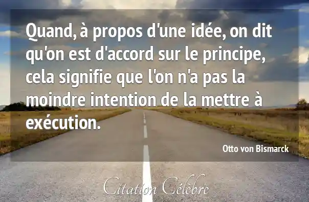 Quand, à propos d'une idée, on dit qu'on est d'accord sur le principe, cela signifie que l'on n'a pas la moindre intention de la mettre à exécution.