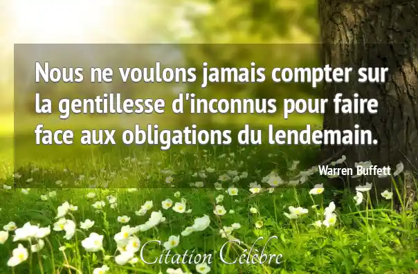 Nous ne voulons jamais compter sur la gentillesse d'inconnus pour faire face aux obligations du lendemain.