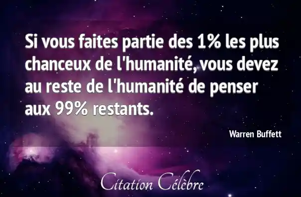 Si vous faites partie des 1% les plus chanceux de l'humanité, vous devez au reste de l'humanité de penser aux 99% restants.