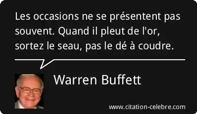 Les occasions ne se présentent pas souvent. Quand il pleut de l'or, sortez le seau, pas le dé à coudre.