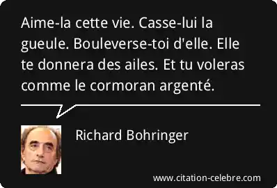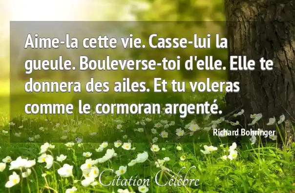 Aime-la cette vie. Casse-lui la gueule. Bouleverse-toi d'elle. Elle te donnera des ailes. Et tu voleras comme le cormoran argenté.