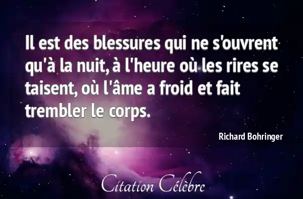 Il est des blessures qui ne s'ouvrent qu'à la nuit, à l'heure où les rires se taisent, où l'âme a froid et fait trembler le corps.