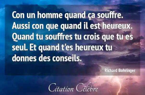 Con un homme quand ça souffre. Aussi con que quand il est heureux. Quand tu souffres tu crois que tu es seul. Et quand t'es heureux tu donnes des conseils.
