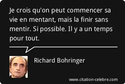 Je crois qu'on peut commencer sa vie en mentant, mais la finir sans mentir. Si possible. Il y a un temps pour tout.