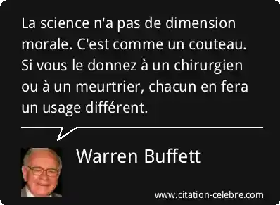 La science n'a pas de dimension morale. C'est comme un couteau. Si vous le donnez à un chirurgien ou à un meurtrier, chacun en fera un usage différent.