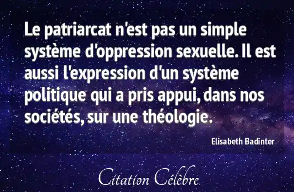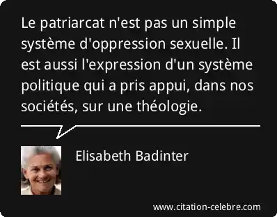 Le patriarcat n'est pas un simple système d'oppression sexuelle. Il est aussi l'expression d'un système politique qui a pris appui, dans nos sociétés, sur une théologie.