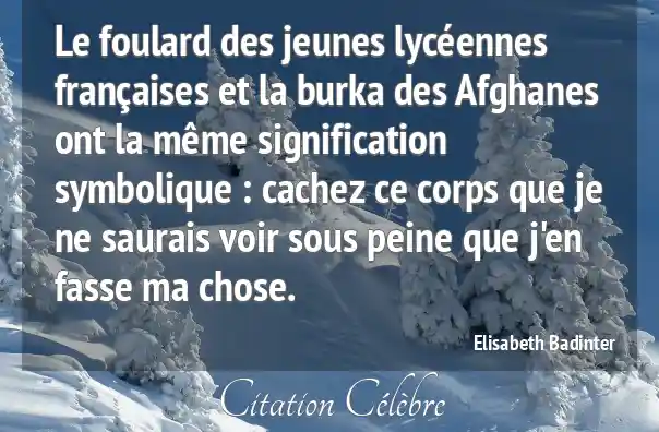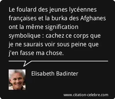 Le foulard des jeunes lycéennes françaises et la burka des Afghanes ont la même signification symbolique : cachez ce corps que je ne saurais voir sous peine que j'en fasse ma chose.