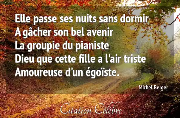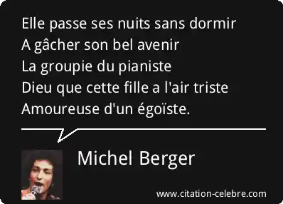 Elle passe ses nuits sans dormirA gâcher son bel avenirLa groupie du pianisteDieu que cette fille a l'air tristeAmoureuse d'un égoïste.