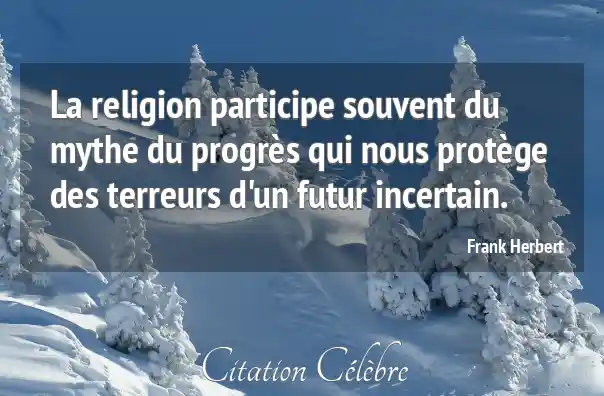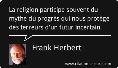 La religion participe souvent du mythe du progrès qui nous protège des terreurs d'un futur incertain.
