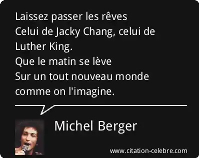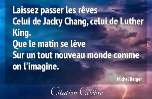 Laissez passer les rêvesCelui de Jacky Chang, celui de Luther King.Que le matin se lèveSur un tout nouveau monde comme on l'imagine.