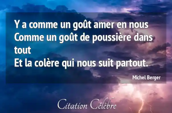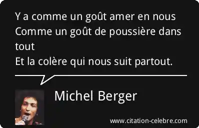 Y a comme un goût amer en nousComme un goût de poussière dans toutEt la colère qui nous suit partout.