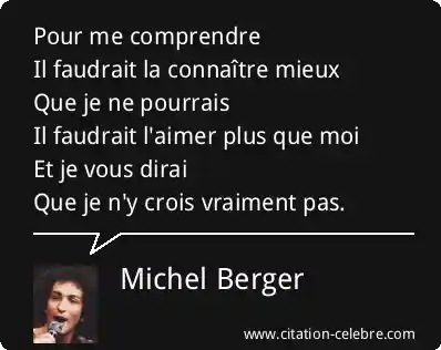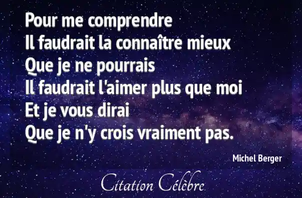 Pour me comprendreIl faudrait la connaître mieuxQue je ne pourraisIl faudrait l'aimer plus que moiEt je vous diraiQue je n'y crois vraiment pas.