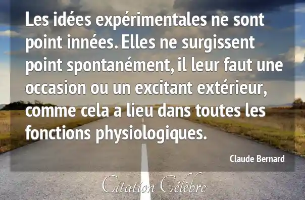 Les idées expérimentales ne sont point innées. Elles ne surgissent point spontanément, il leur faut une occasion ou un excitant extérieur, comme cela a lieu dans toutes les fonctions physiologiques.