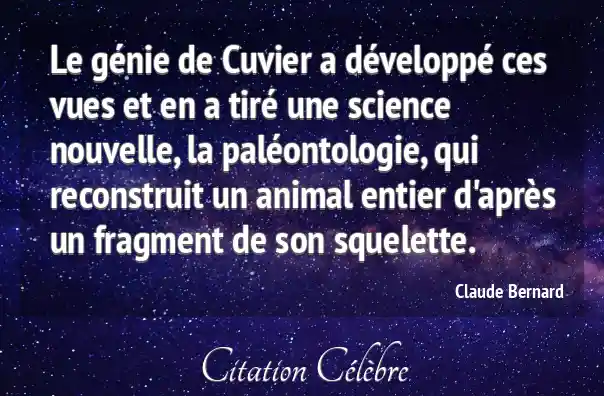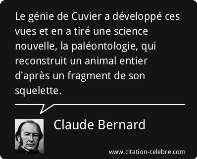 Le génie de Cuvier a développé ces vues et en a tiré une science nouvelle, la paléontologie, qui reconstruit un animal entier d'après un fragment de son squelette.