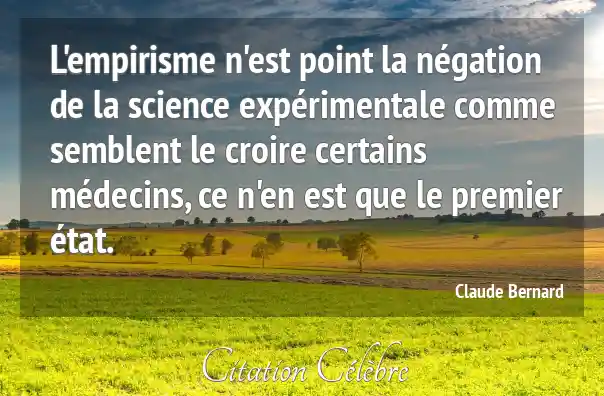 L'empirisme n'est point la négation de la science expérimentale comme semblent le croire certains médecins, ce n'en est que le premier état.