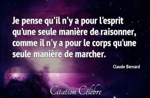 Je pense qu'il n'y a pour l'esprit qu'une seule manière de raisonner, comme il n'y a pour le corps qu'une seule manière de marcher.