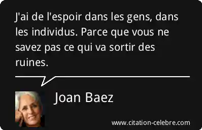 J'ai de l'espoir dans les gens, dans les individus. Parce que vous ne savez pas ce qui va sortir des ruines.