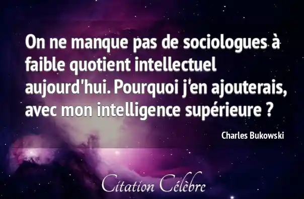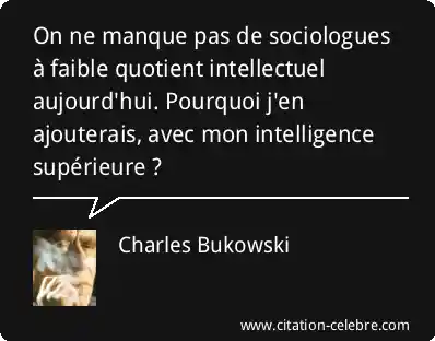 On ne manque pas de sociologues à faible quotient intellectuel aujourd'hui. Pourquoi j'en ajouterais, avec mon intelligence supérieure ?