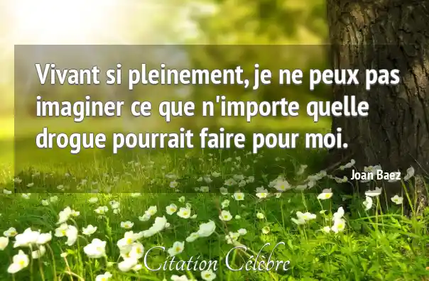 Vivant si pleinement, je ne peux pas imaginer ce que n'importe quelle drogue pourrait faire pour moi.