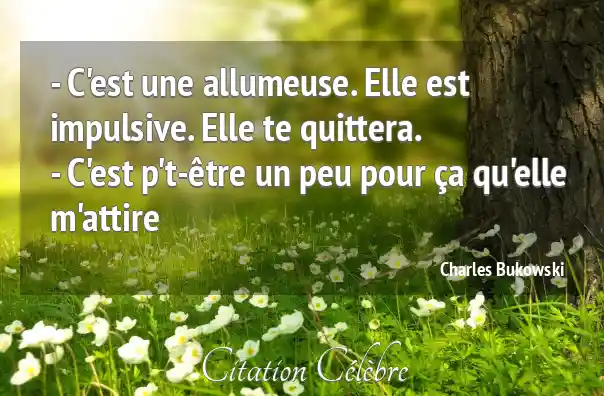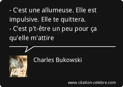 - C'est une allumeuse. Elle est impulsive. Elle te quittera.- C'est p't-être un peu pour ça qu'elle m'attire